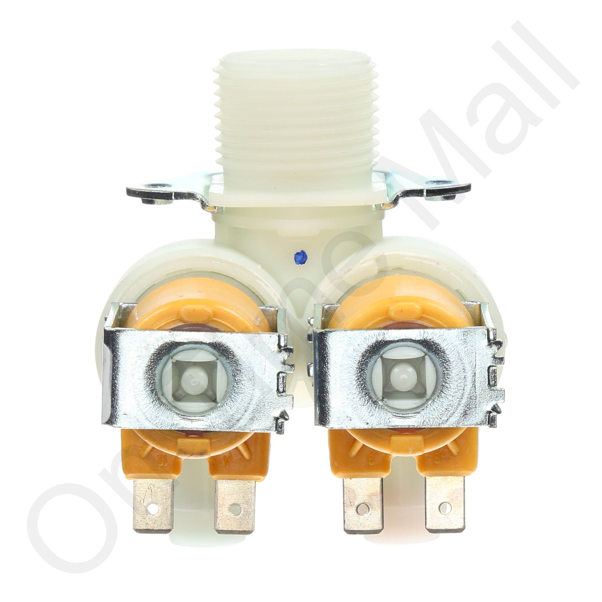 This valve has a single inlet BUT has 2 solenoid coils and 2 outlet fittings. It is for units that have a drain line tempering system in them. Drain line tempering systems are optional in certain models including the NHTC and NHPC series.